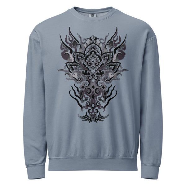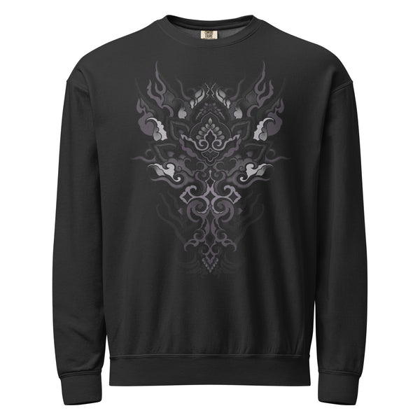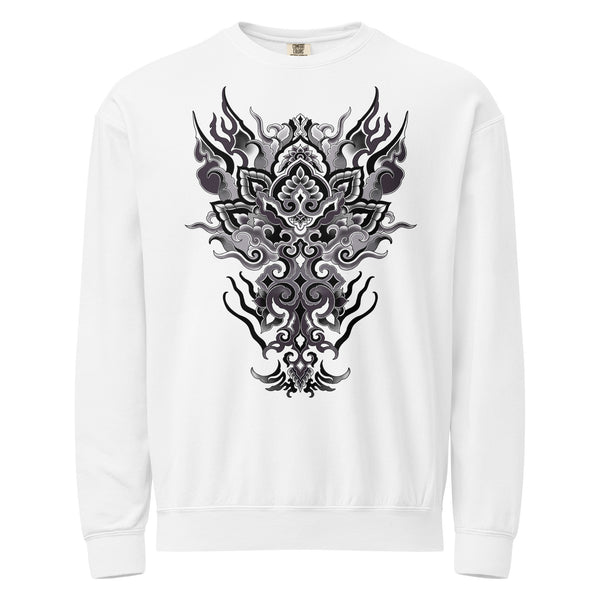 The Dragon Mystic Light design adds an instant vintage touch to your wardrobe with this garment-dyed fleece crewneck. Its soft, midweight cotton fabric and relaxed fit make it perfect for everyday wear. Each piece has subtle color variations that create a unique, lived-in look.